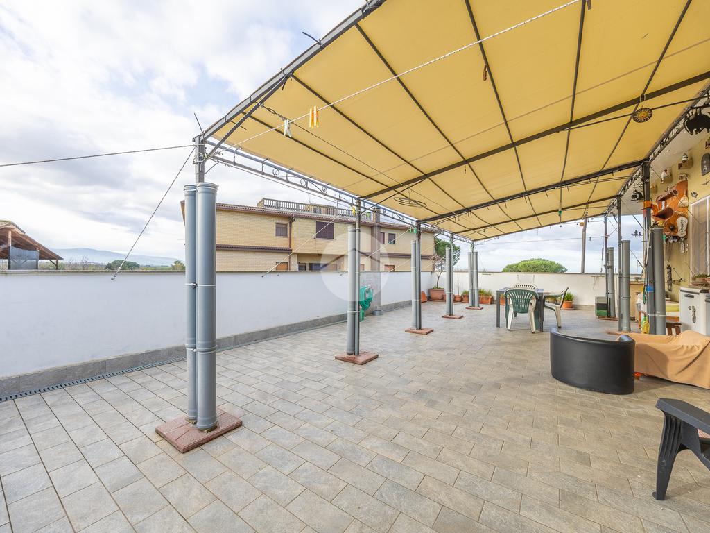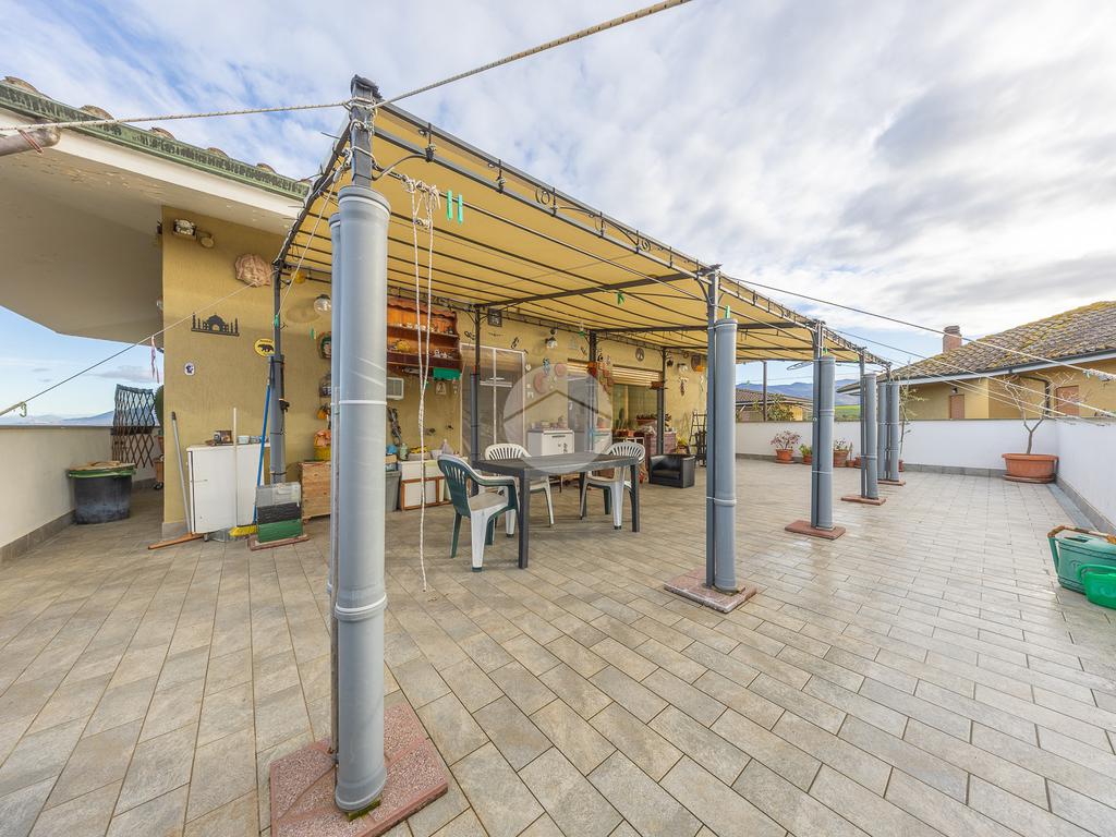 A completare la proprietà un terrazzo con vista panoramica di circa 120 mq ed un balcone perimetrale con accesso a tutti gli ambienti. Le numerose finestre regalano luce naturale durante tutto l’arco della giornata.