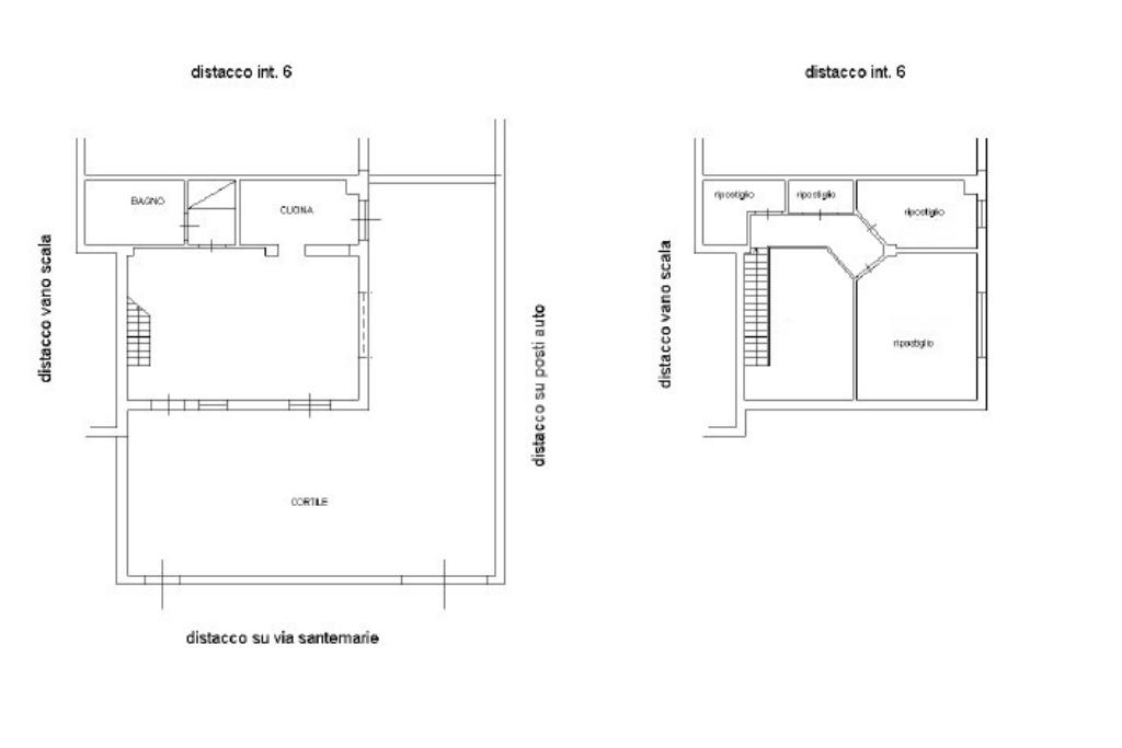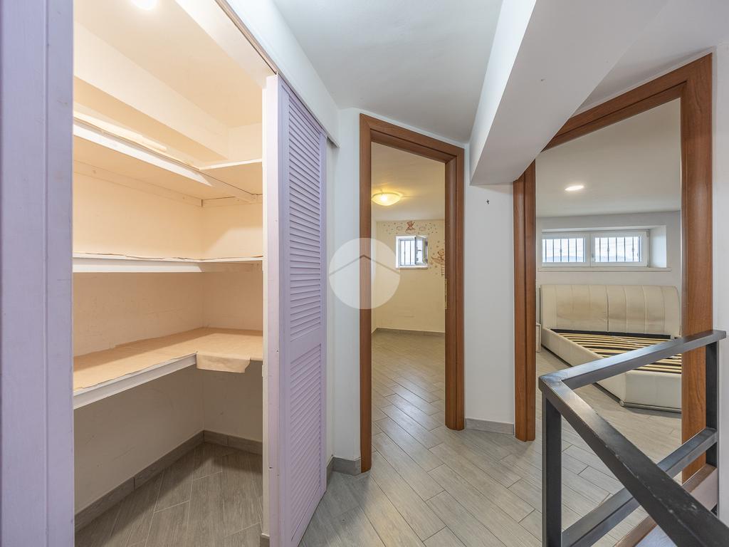 L'immobile, internamente, è composto da salone con cucina a vista e bagno cieco con vasca al piano terra. Il piano superiore è composto da un locale adibito a camera, un locale adibito a cameretta, un ripostiglio ed un locale adibito a bagno cieco con doccia.
