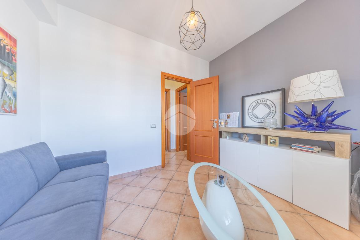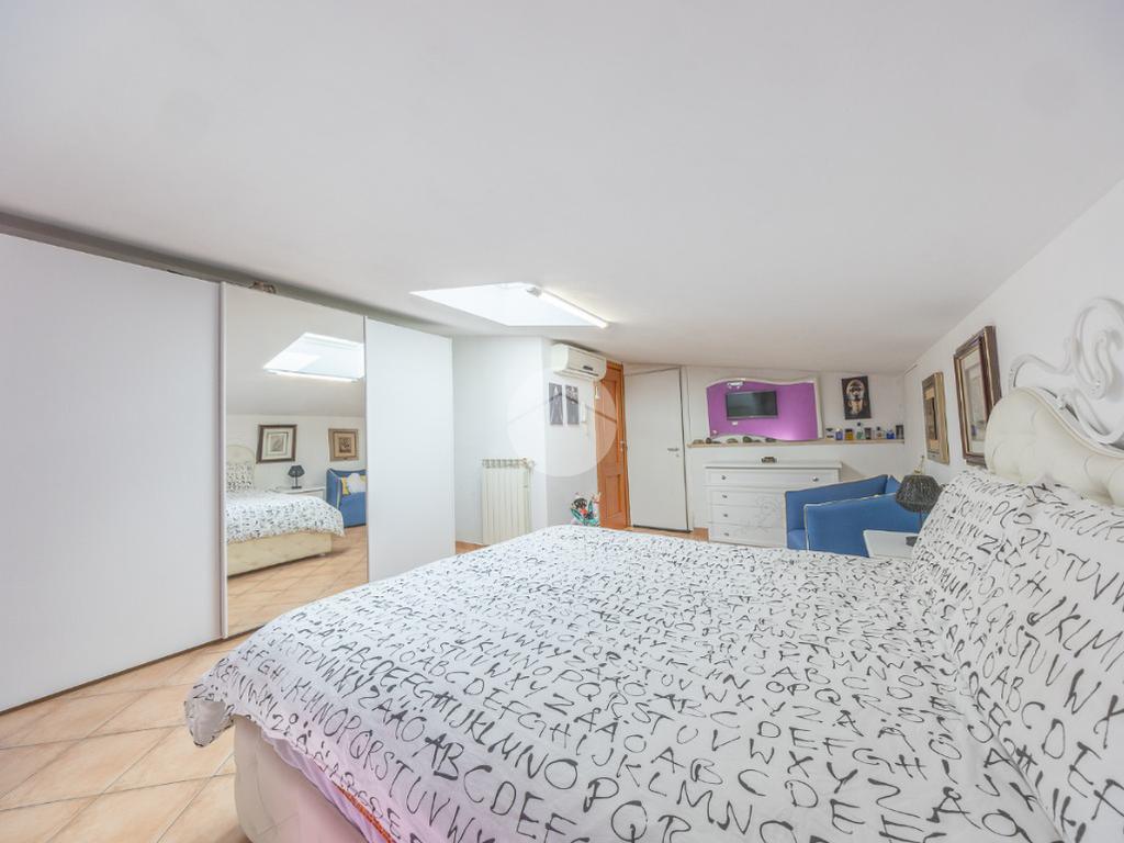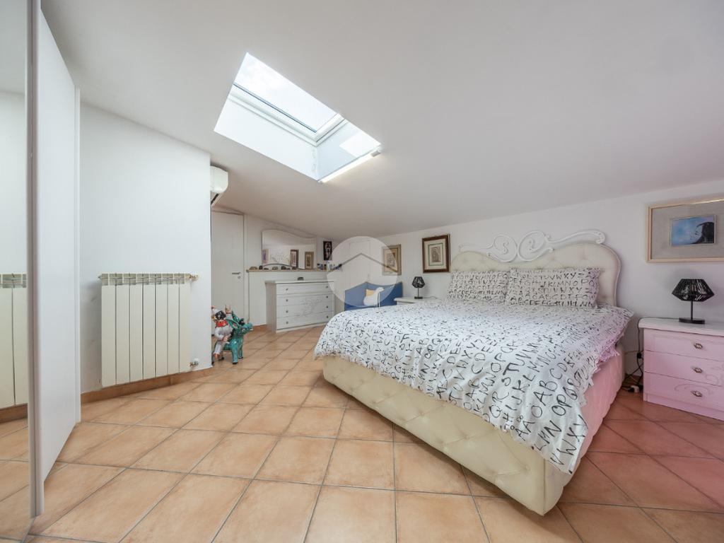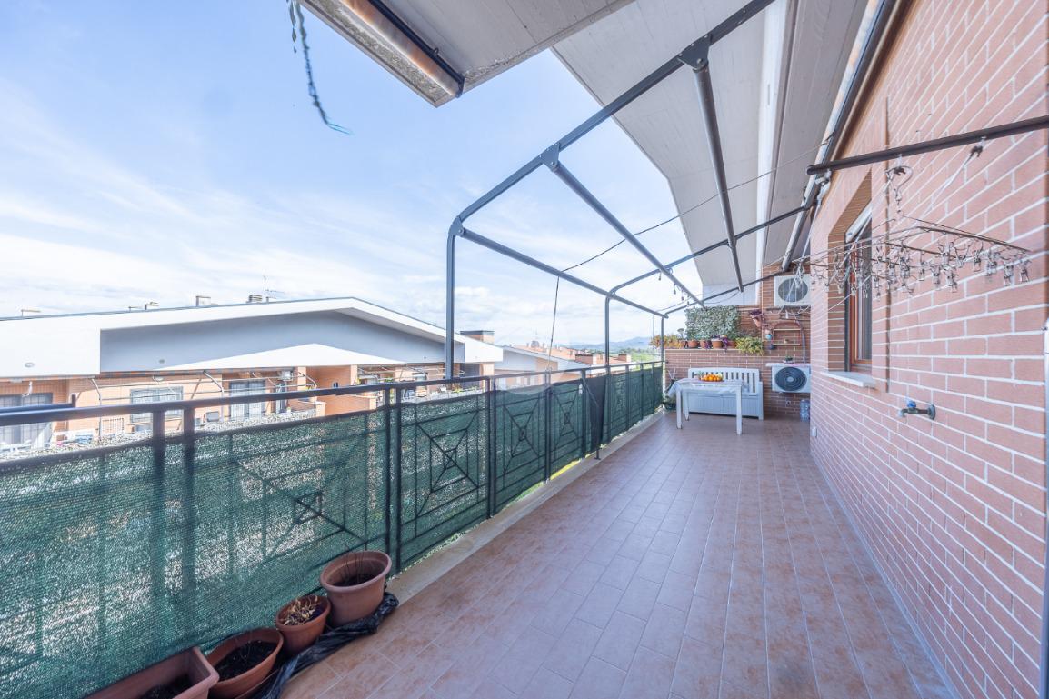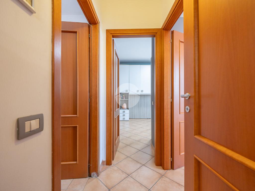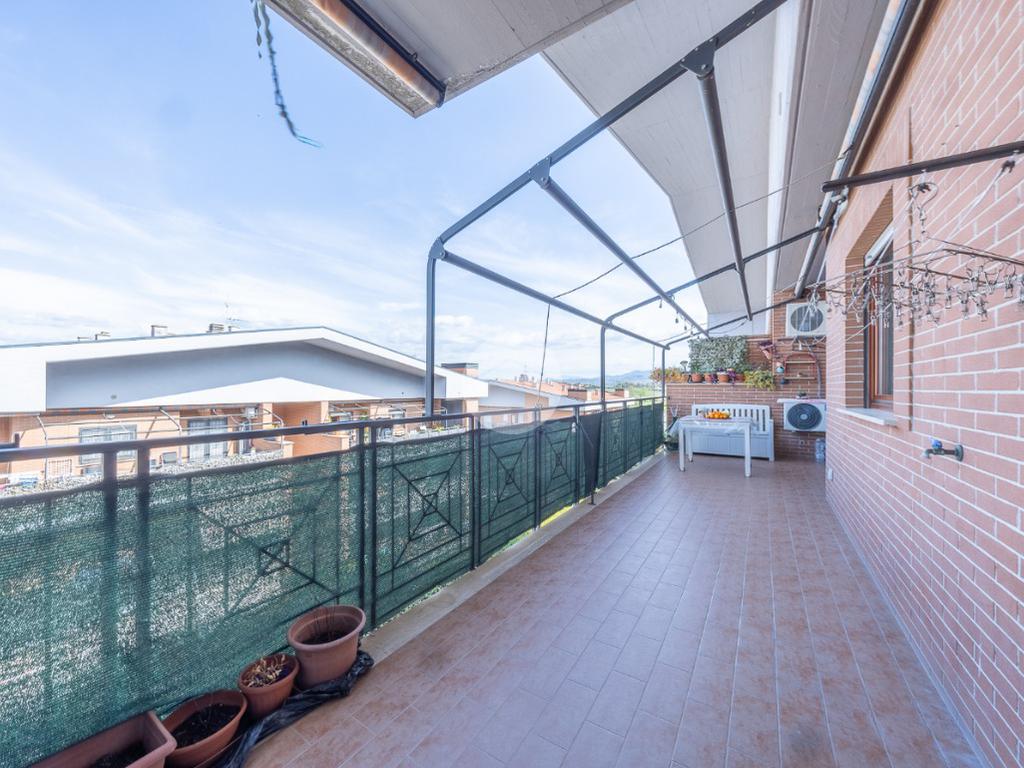 Completano la proprietà un terrazzo di circa 15 mq e due posti auto all'interno dell'area condominiale. La soluzione è dotata di predisposizione per l'impianto di condizionamento, porta blindata ed infissi in legno doppio vetro.