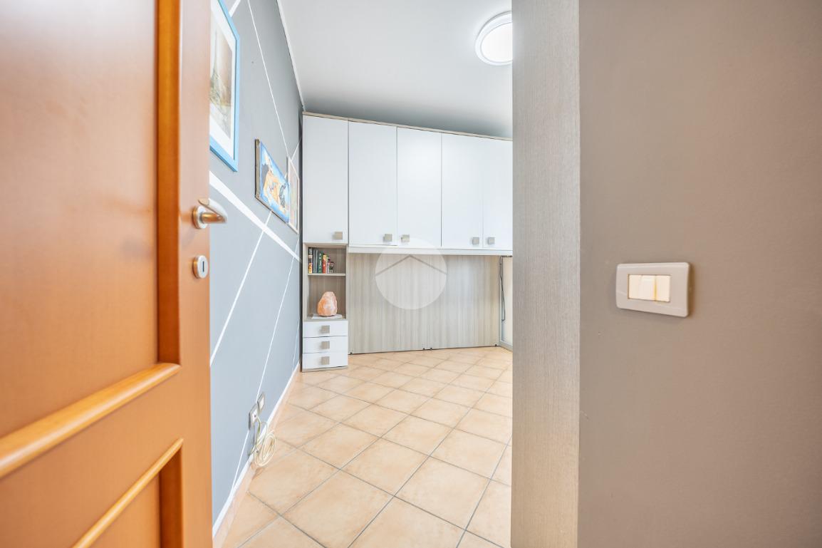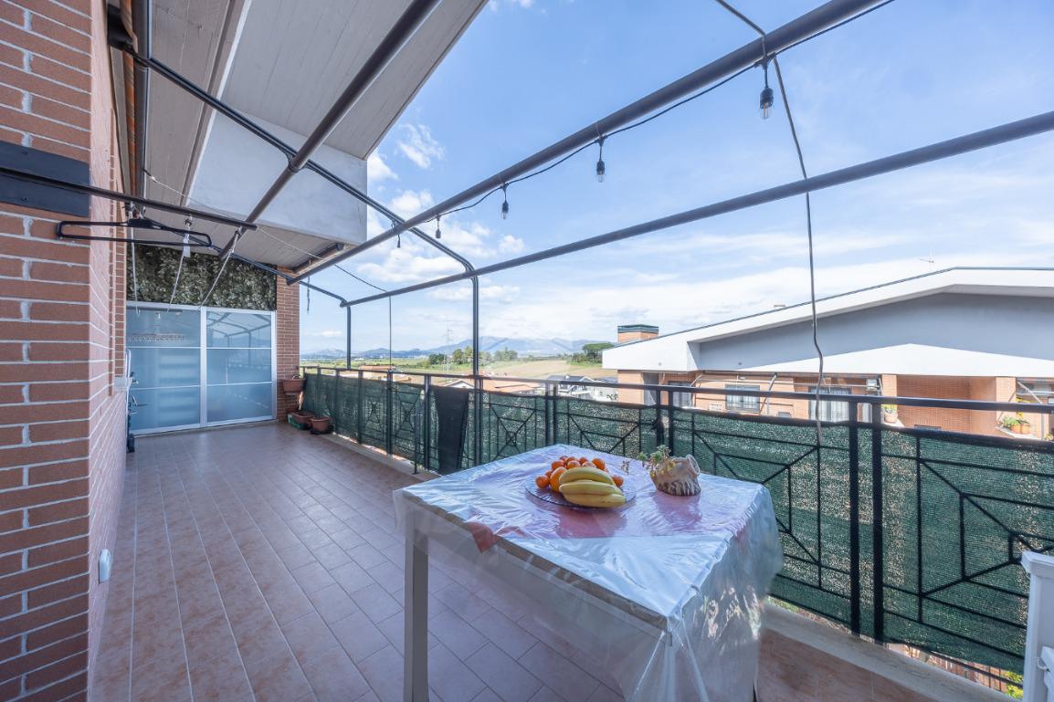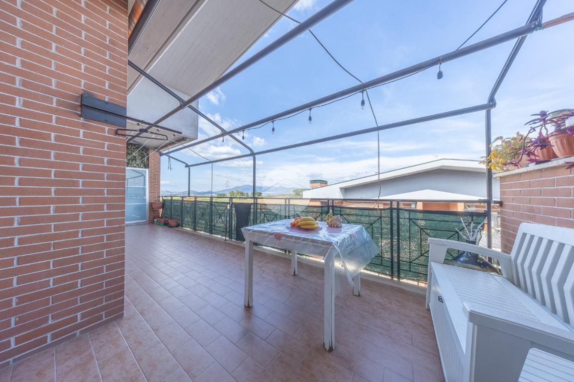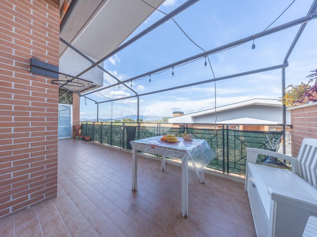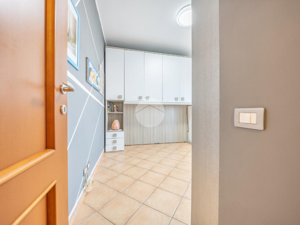 Completano la proprietà un terrazzo di circa 15 mq e due posti auto all'interno dell'area condominiale. La soluzione è dotata di predisposizione per l'impianto di condizionamento, porta blindata ed infissi in legno doppio vetro.