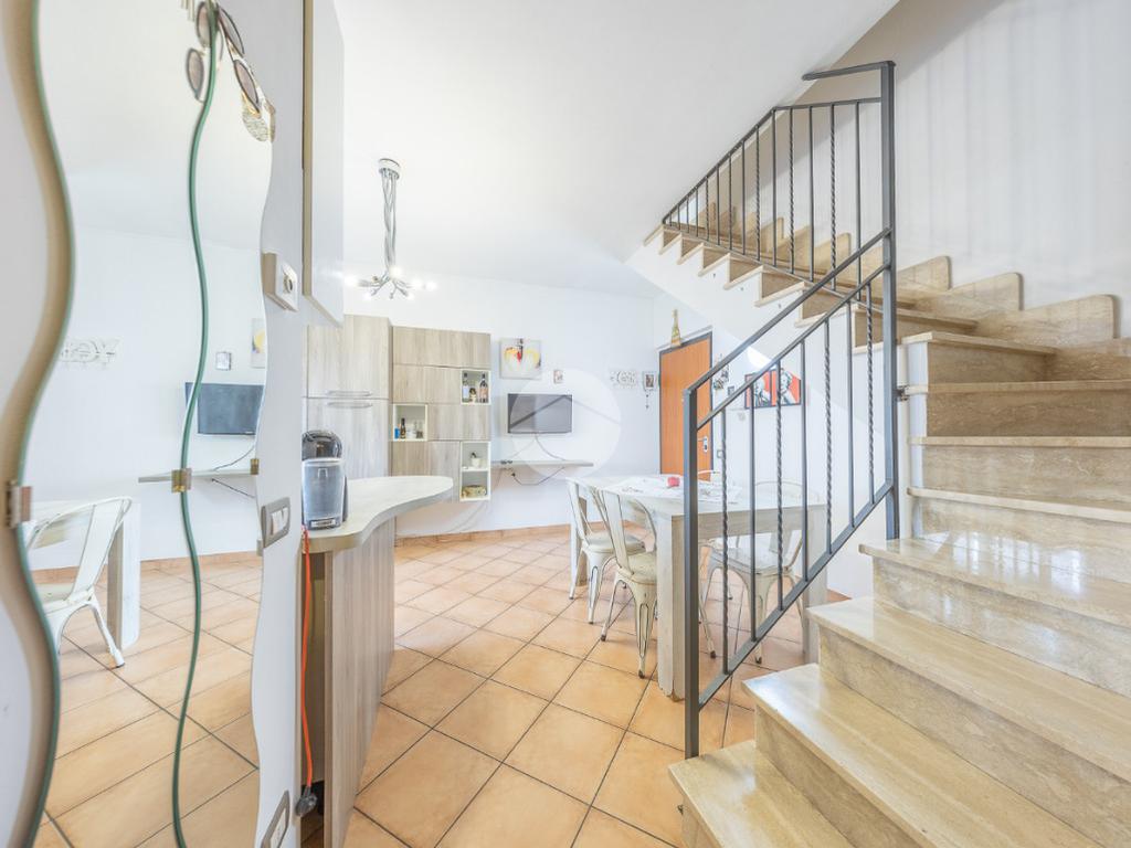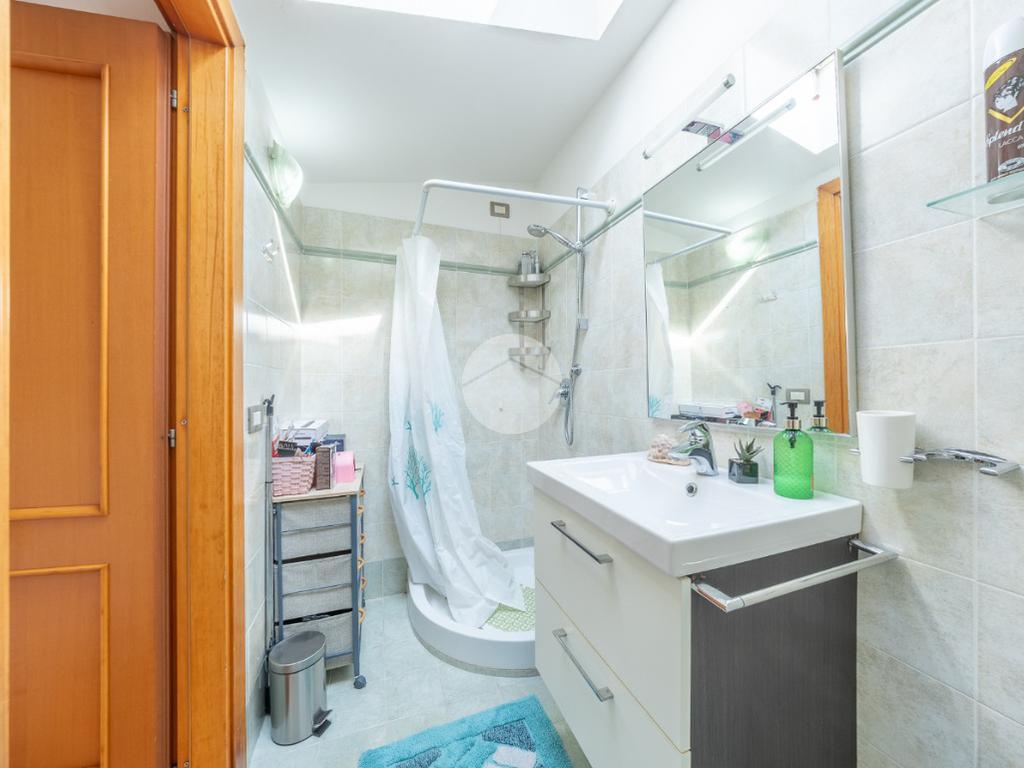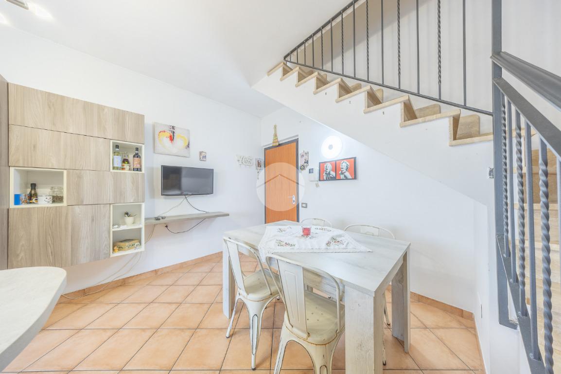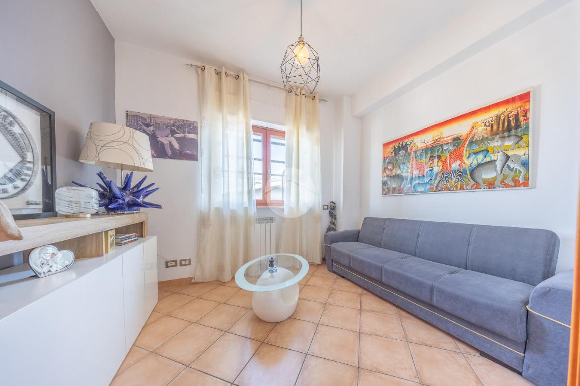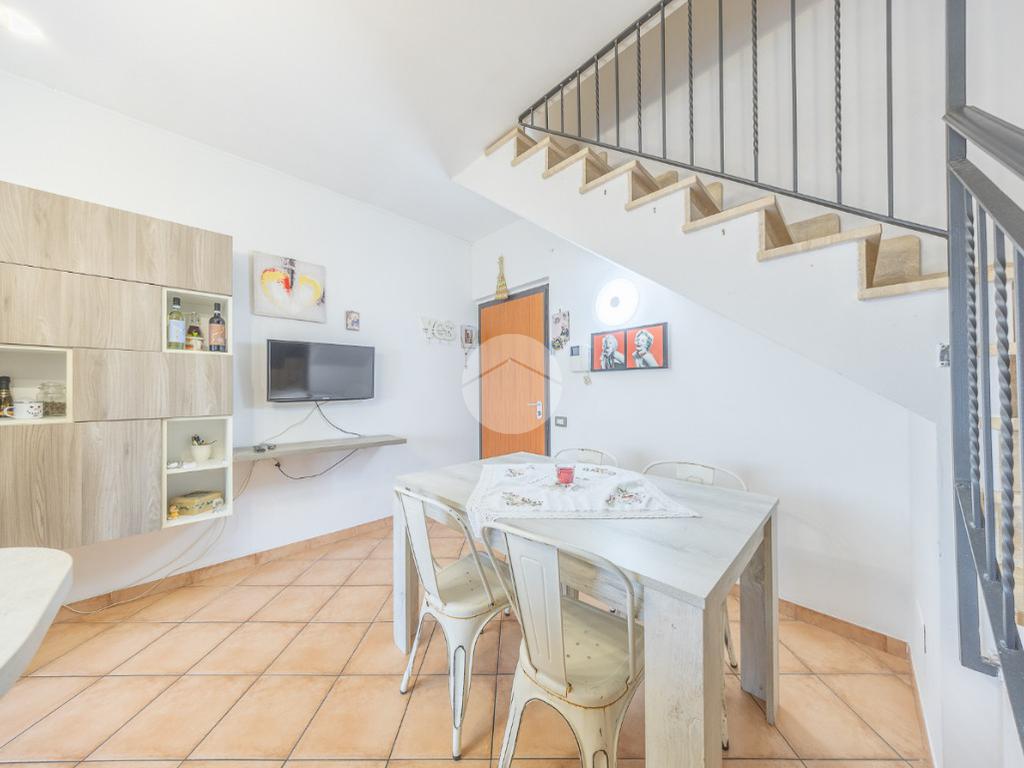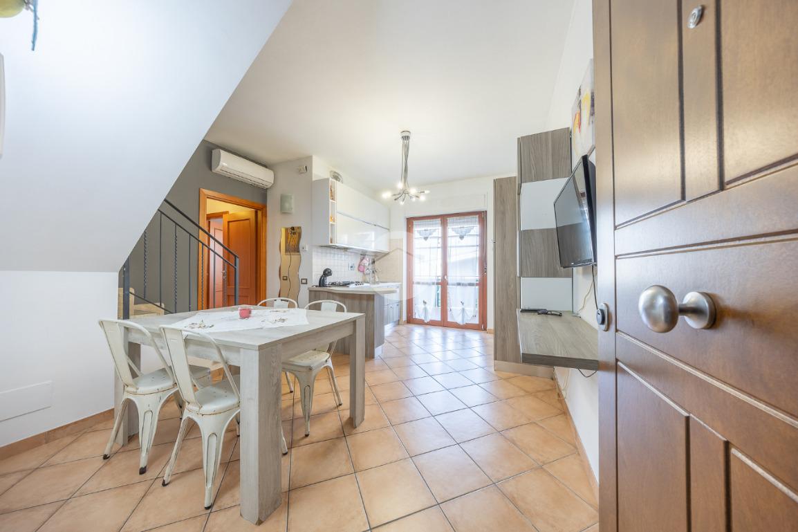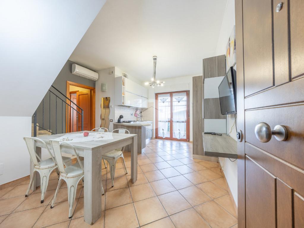 L'immobile, al piano residenziale, è composto da salone con angolo cottura, camera matrimoniale, cameretta e bagno con doccia e finestra. Al piano superiore troviamo un locale adibito a camera, un locale adibito a bagno con doccia e finestra ed un locale sottotetto adibito a ripostiglio.