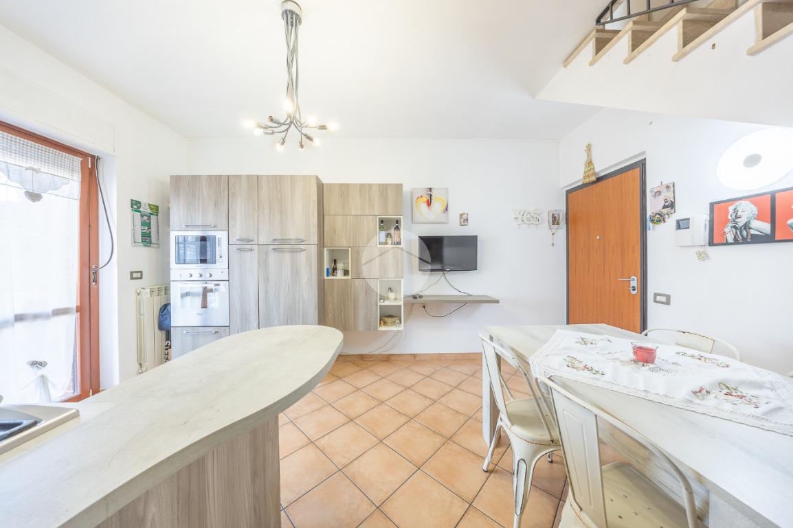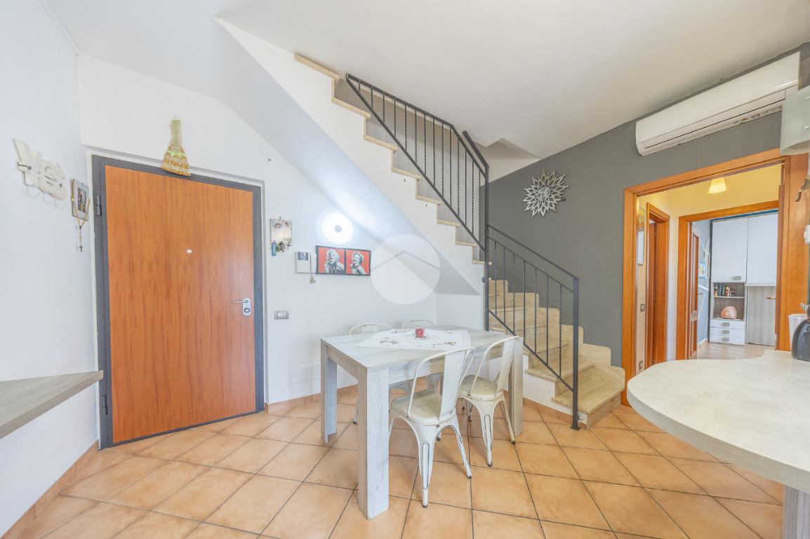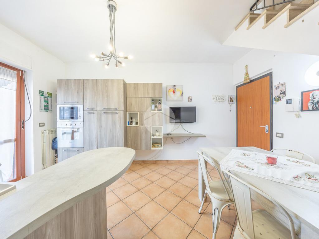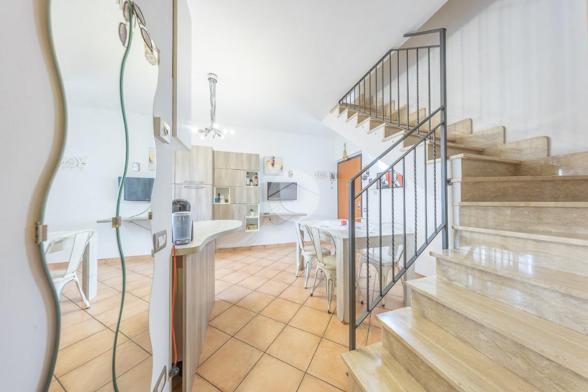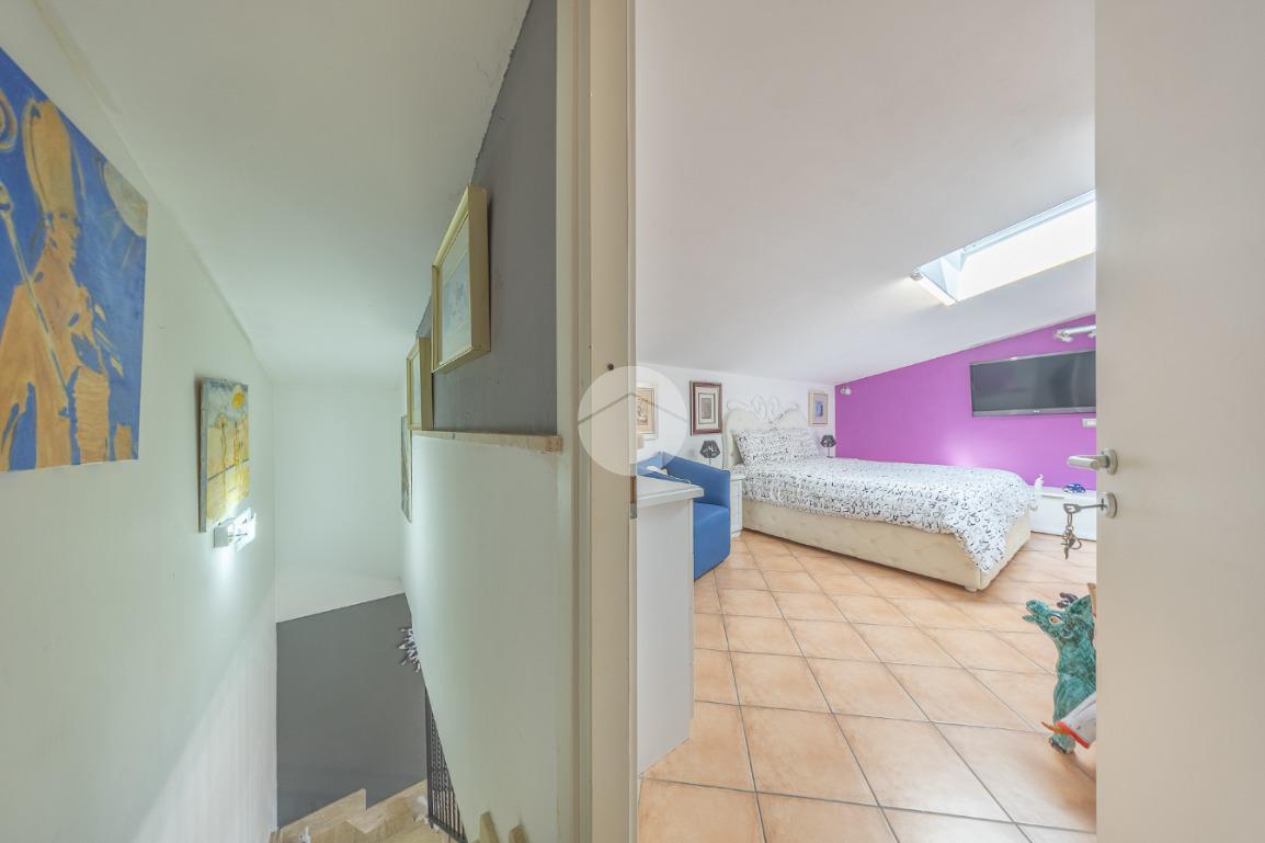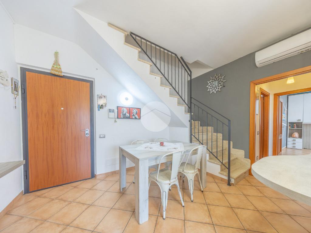 L'immobile, al piano residenziale, è composto da salone con angolo cottura, camera matrimoniale, cameretta e bagno con doccia e finestra. Al piano superiore troviamo un locale adibito a camera, un locale adibito a bagno con doccia e finestra ed un locale sottotetto adibito a ripostiglio.